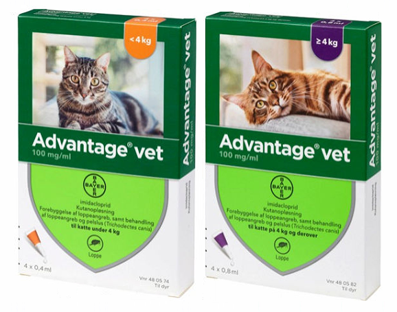 Vi har fundet Advantage Vet Loppemiddel Til Kat fra Diverse hos Alttilhundogkat.dk i kategorien Kat Loppemidler Loppemidler. Advantage Vet indeholder imidacloprid, som dræber voksne lopper på dyret samt larver i de nære omgivelser.