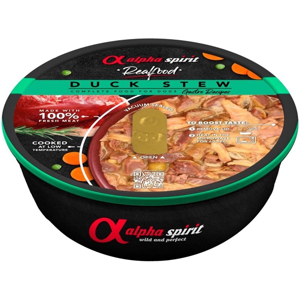 Vi har fundet Alpha Spirit Real Food Duck Stew G fra Alpha Spirit hos Hunde-foder.dk i kategorien Vådfoder Dåsemad. Komplet vådfoder fra Alpha spirit med indhold af 97% fersk and samt grøntsager