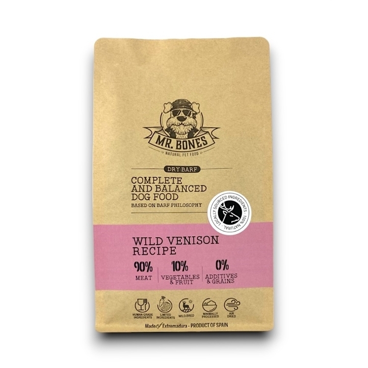 Vi har fundet Mr Bones Dry Barf Wild Venison Recipe G fra Mr. Bones hos Hunde-foder.dk i kategorien Mr Bones Hundefoder. Spansk lufttørret frisk kød, kødben, næringsrigt organkød, frugt og grøntsager. Med 90% kød, 10% frugt og grøntsager og 0% tilsætningsstoffer og korn. Hentet fra lokale landmænd og producenter.