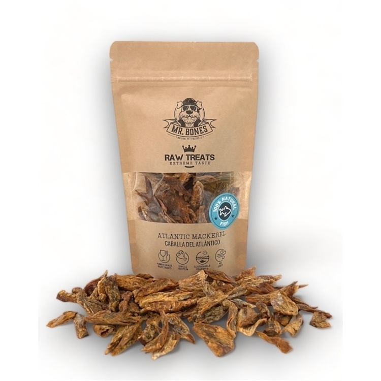 Vi har fundet Mr Bones Raw Treats Atlantic Mackerel fra Mr. Bones hos Hunde-foder.dk i kategorien Godbidder. Naturlig og sund godbid af 100% atlantisk makrel, skåret i små stykker og nænsom tørret ved lavtemperaturluft.