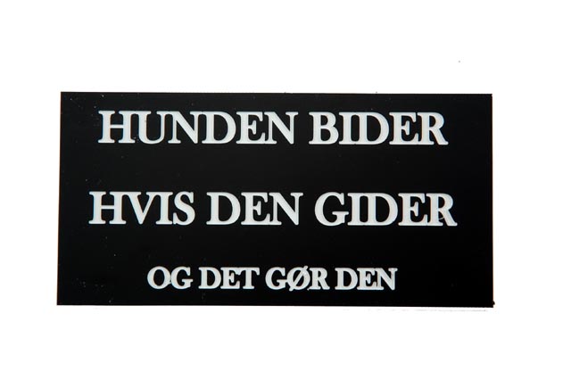 Vi har fundet Skilt: Hunden Bider Hvis Den Gider Og Det Gør Den fra Diverse hos Alttilhundogkat.dk i kategorien Til Ejeren Klistermærker Nøgleringe Skilte Mm Skilte. Sort skilt med hvid tekst eller hvidt skilt med sort tekst. Mål ca. 6 x 12cm.