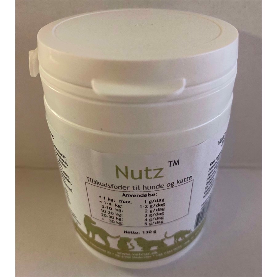 Vi har fundet Vetcur Nutz Til Hund Og Kat G Pulver fra Vetcur Biotec hos Hunde-foder.dk i kategorien Tilskud. VetCur Kernekraft til hund og kat, en naturlig kilde til vitaminer, mineraler, sporeelementer, aminosyrer og sunde fedtstoffer.